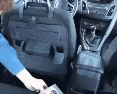 Coloca el organizador en la parte trasera del asiento delantero. Se ajusta fácilmente y queda firme en segundos, sin herramientas.