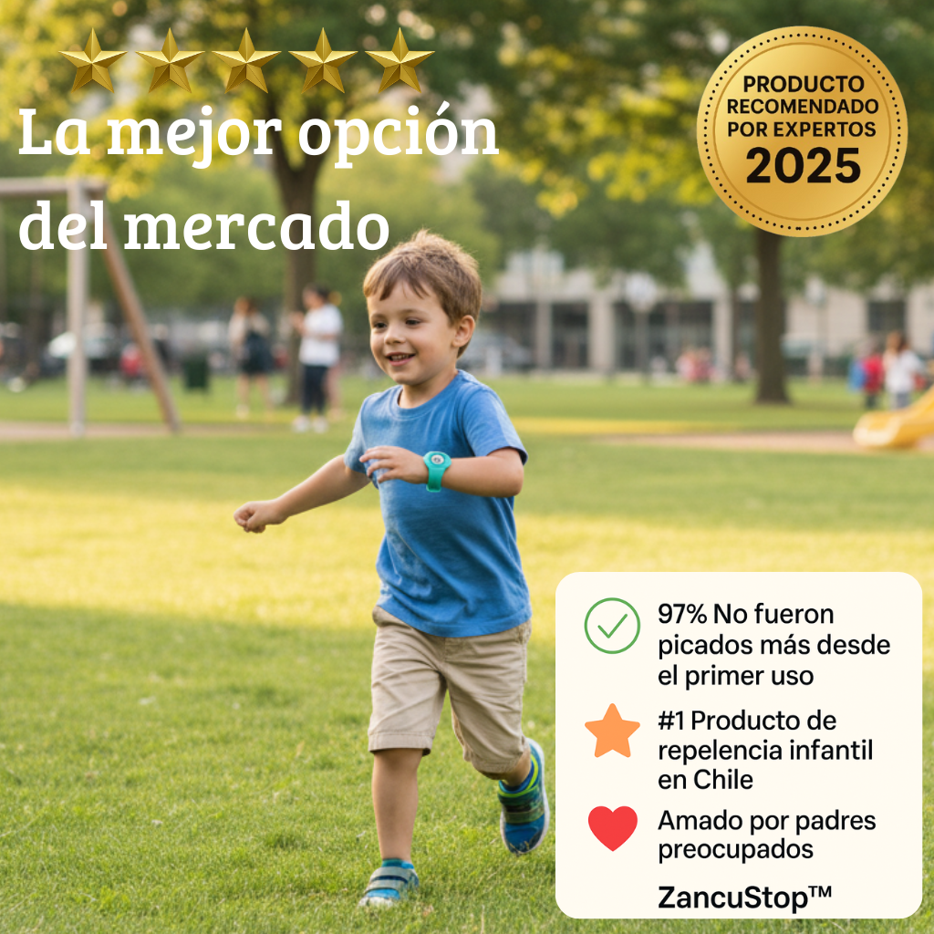 Descubre por qué ZancuStop™ se ha convertido en la opción favorita de las familias chilenas. Una pulsera cómoda, segura y sin químicos que mantiene alejados a los zancudos sin necesidad de aerosoles ni reaplicaciones constantes.